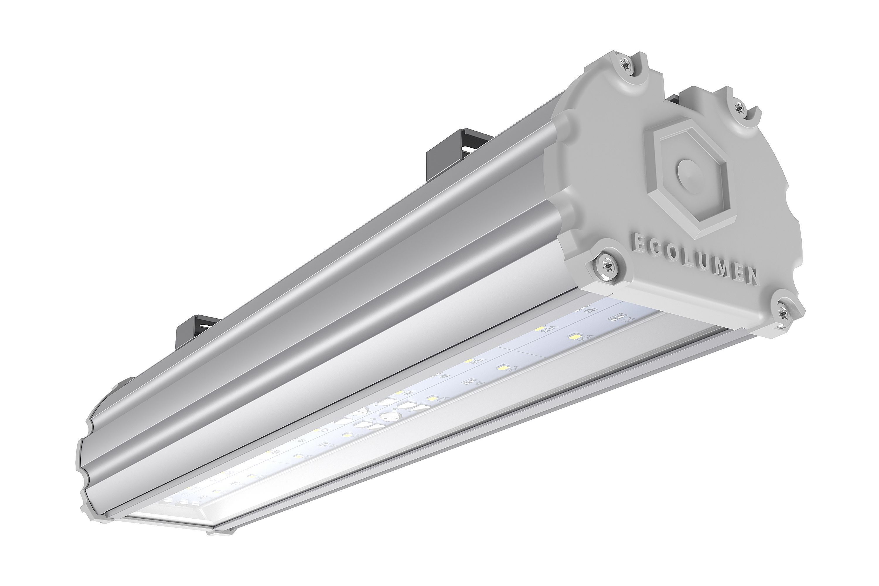 «Эколюмен ALM» - светодиодные светильники промышленного назначения, изготовлены из алюминия с анодированным покрытием. Имеют герметичный корпус IP67 и защиту от перенапряжений до 420В.
