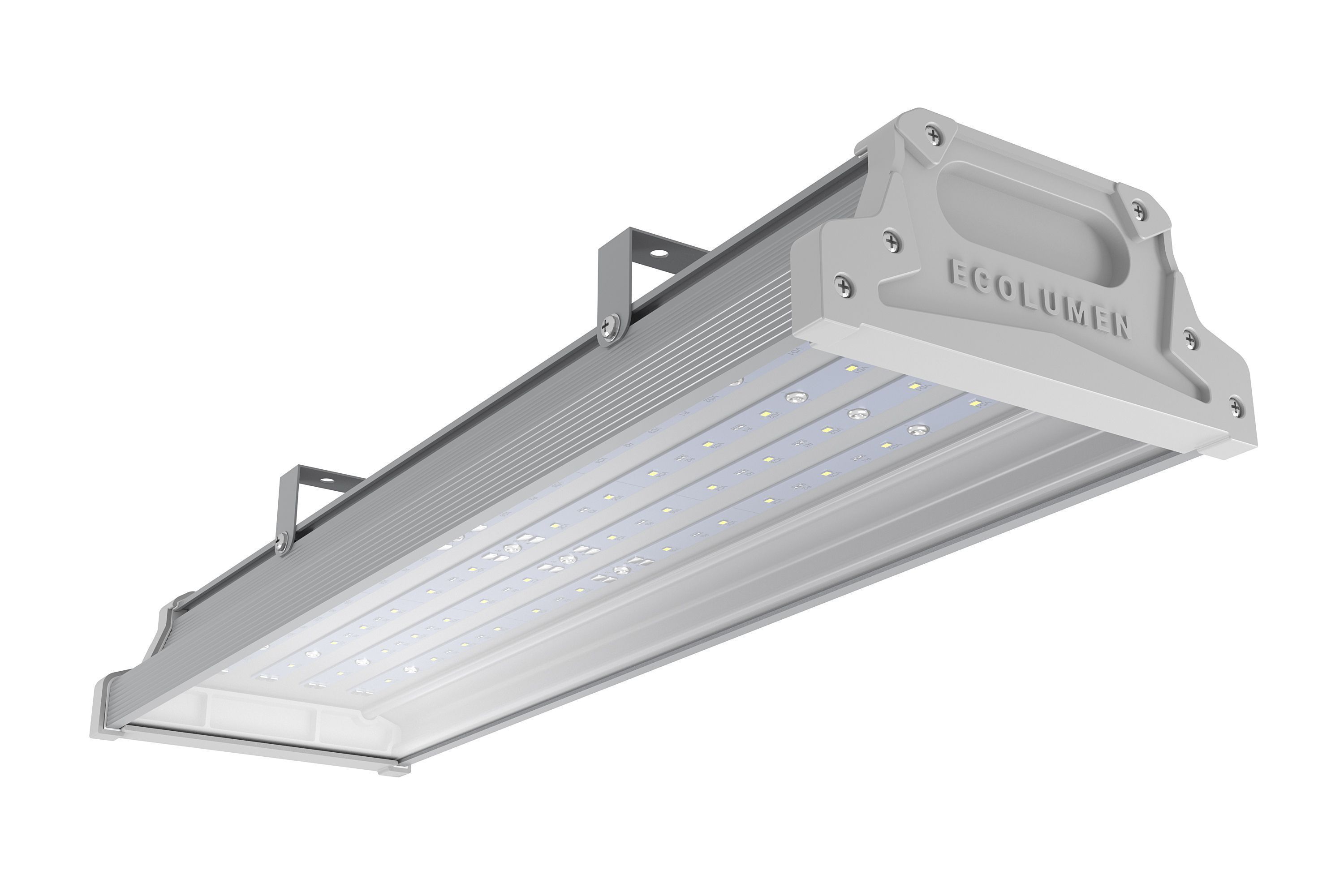 «Эколюмен AL» - промышленные светодиодные светильники. Корпус изделия изготовлен из алюминия с анодированным или полимерным покрытием. Светильники имеют степень защиты IP67 и защиту от перенапряжений до 420В.