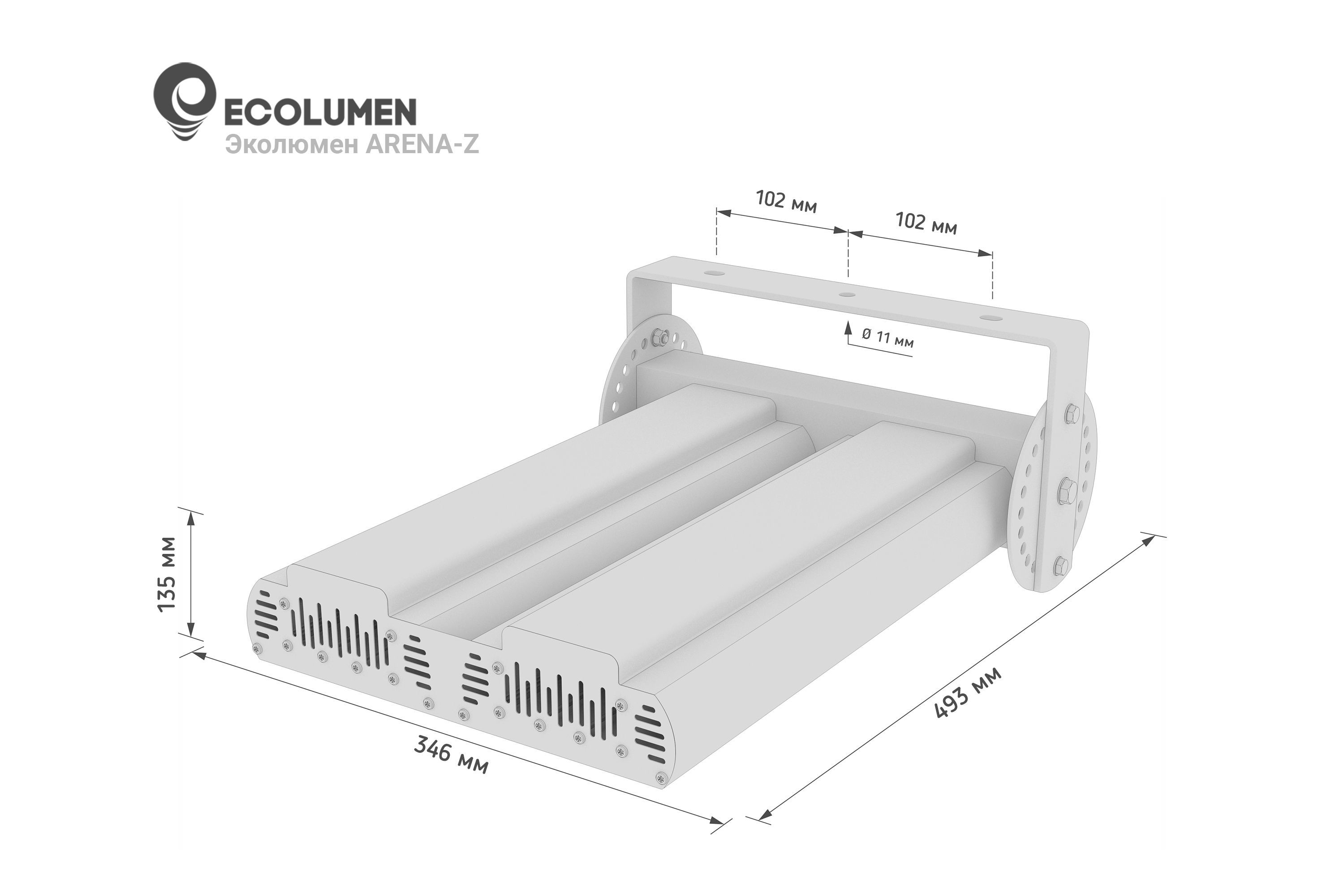 «Эколюмен ARENA-Z» - мачтовые светодиодные уличные светильники, изготавливаются из алюминия с анодированным покрытием. Имеют защиту от длительных перенапряжений до 420В и грозовую защиту до 6000В или 10000В.