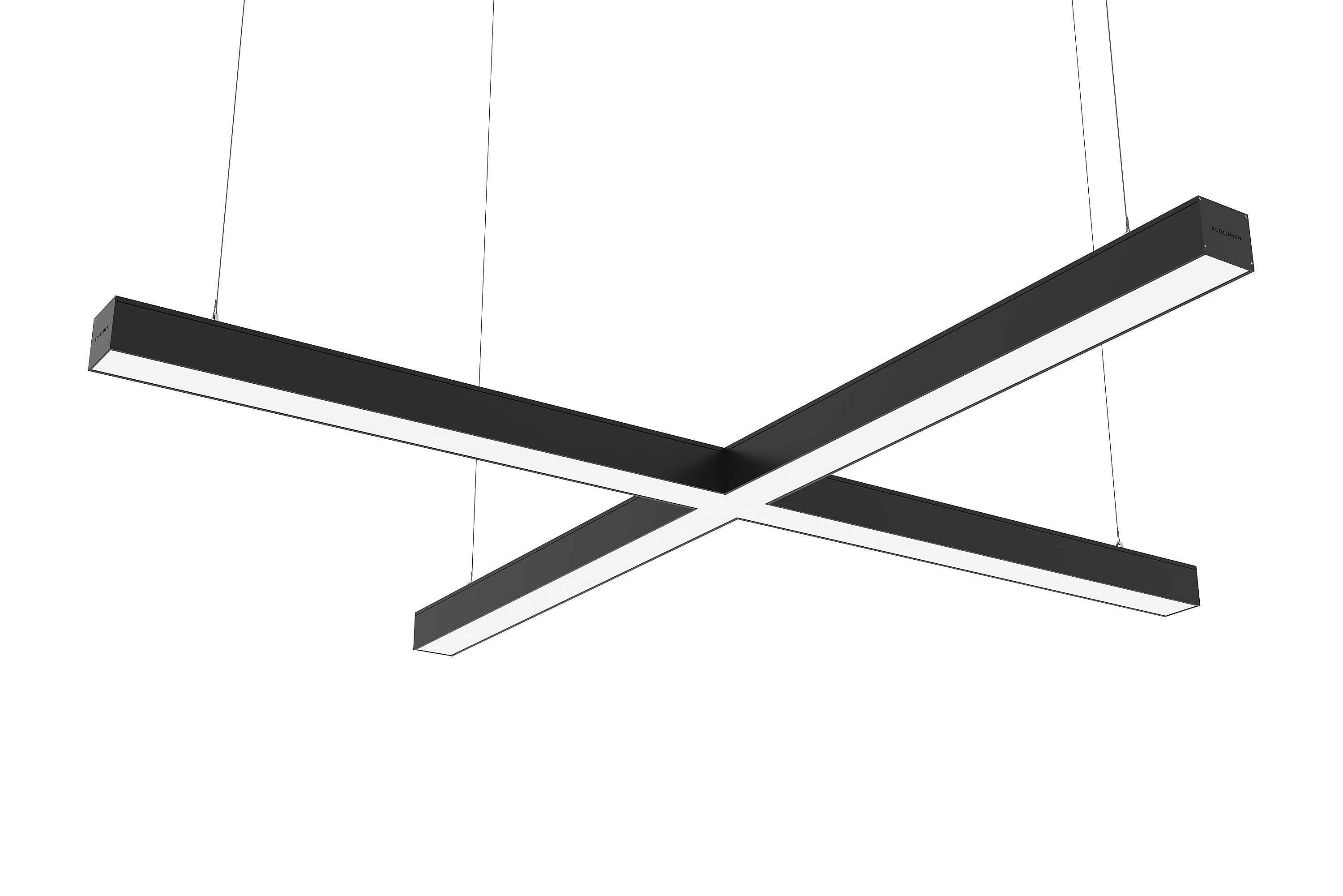 «Эколюмен Ритейл-Форлайн» - российские светодиодные дизайнерские светильники в виде креста. Светильники изготовлены из алюминиевого профиля 60х60мм, образующего четыре равных по длине луча, под углом 90 градусов. Х-образные светильники дизайнерского освещения «Эколюмен-Форлайн» используются для освещения помещений в стиле «LOFT», офисов и торговых площадей с дизайнерским оформлением, ресторанов и фитнес клубов. Конструкция светильников позволяет собирать их в различные фигуры, парящие в воздухе на подвесах или размещать их на потолке либо стенах накладным способом.