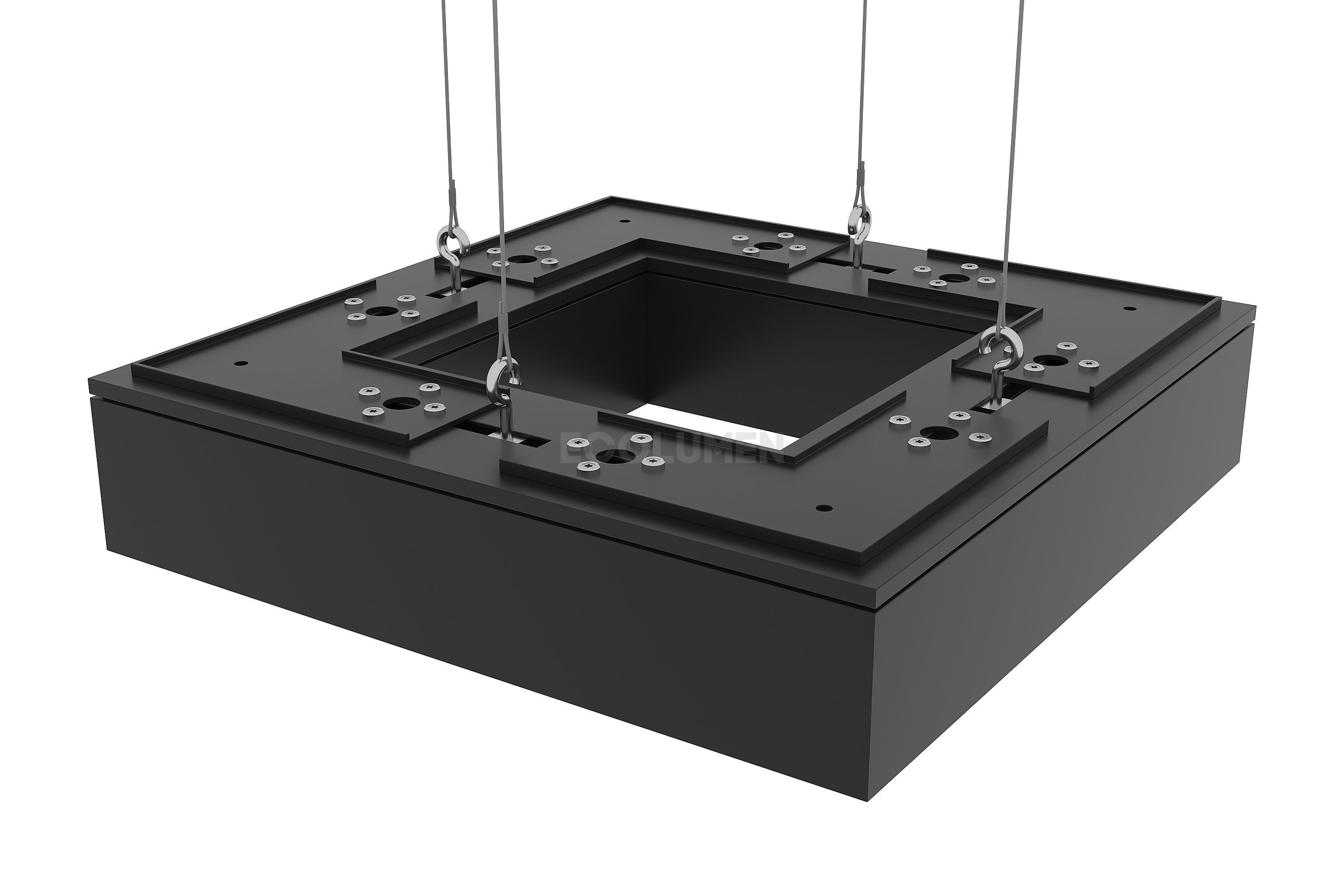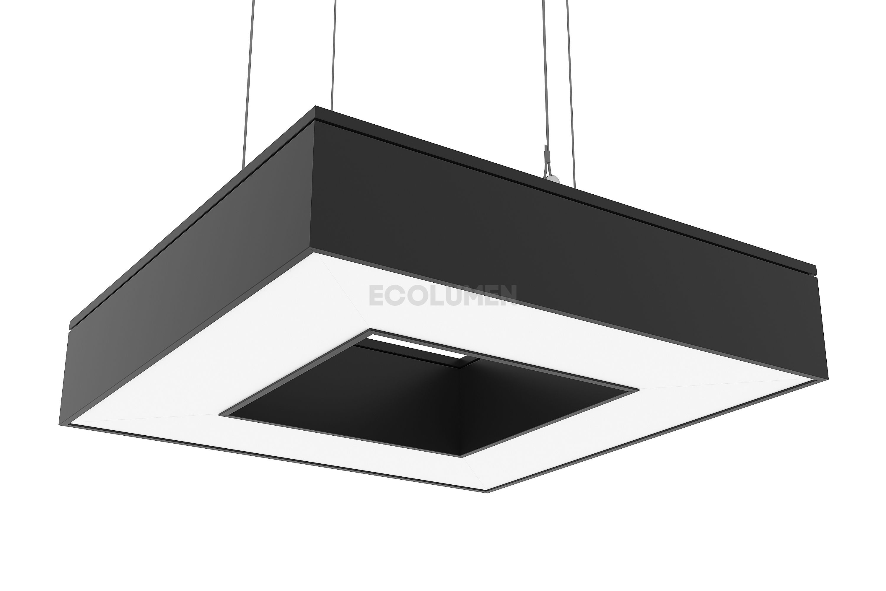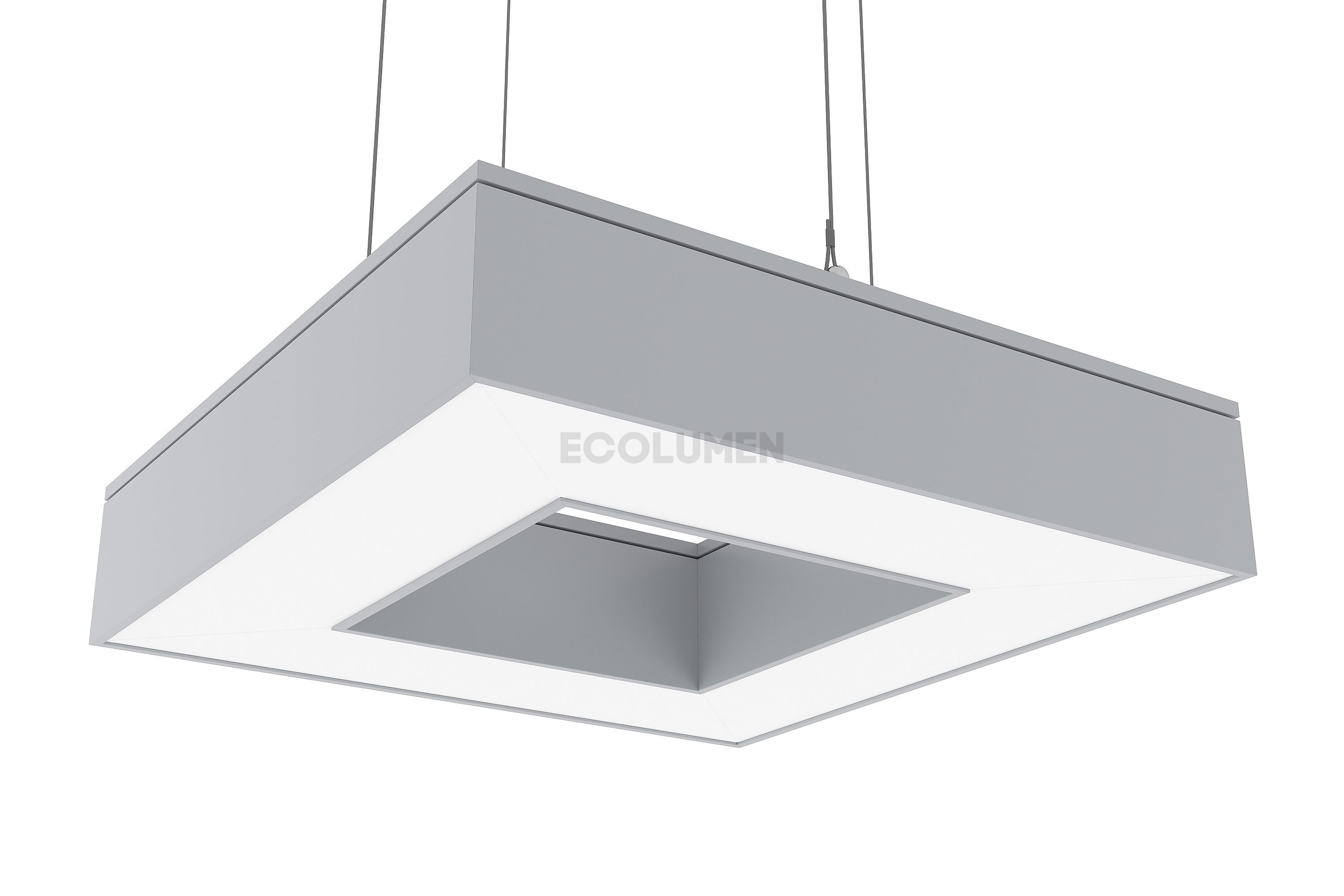Завод дизайнерского освещения «Эколюмен» кроме квадратных производит и изделия других конфигураций: три луча, крест, треугольник, прямоугольник, зигзаг и др. Светильники имеют световой поток от 4000 до 35000 Лм и кроме декоративного света могут использоваться в качестве эффективного основного освещения. Изделия комплектуются подвесами длиной 2 метра и окрашиваются в любой цвет по таблице RAL. При необходимости светильники оснащаются функцией управления освещением по протоколу DALI или диммирования. Любые светильники торговой марки «Эколюмен» могут быть оснащены аварийными, автономными, аккумуляторными блоками БАП.