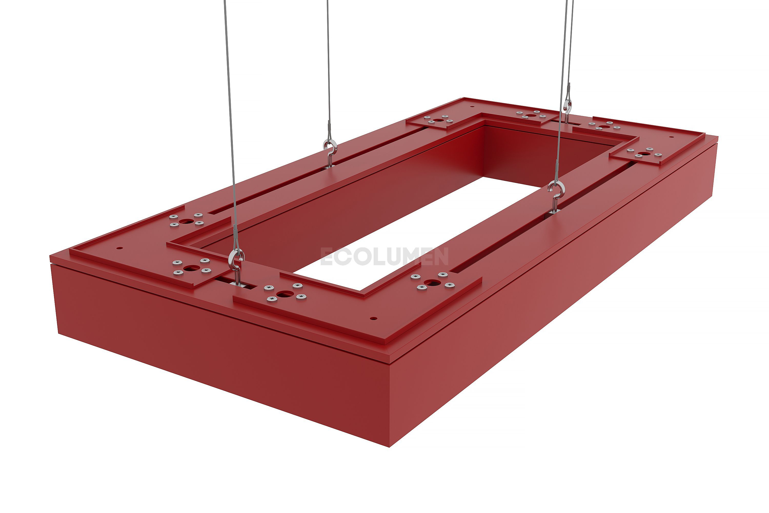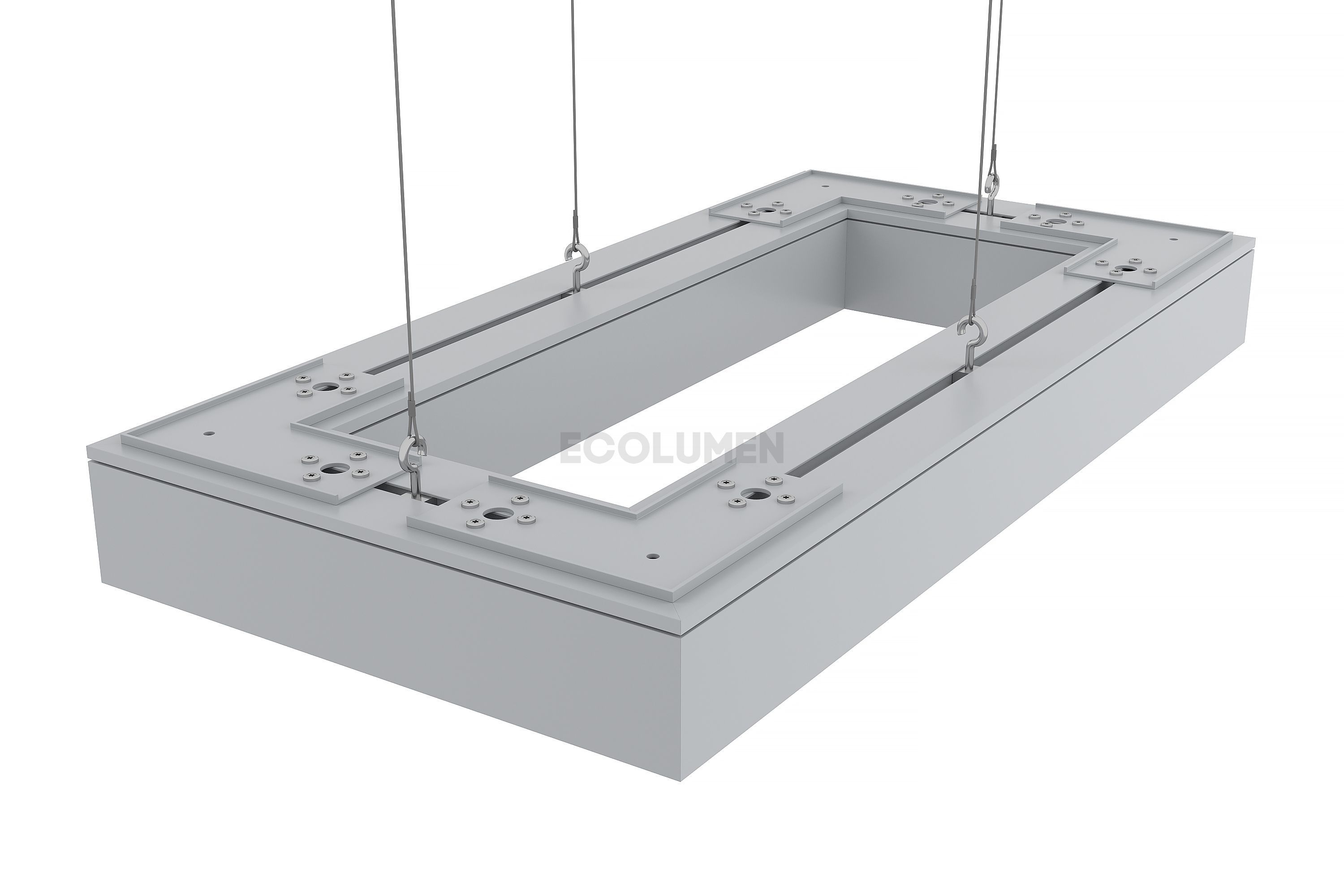 Особая конструкция светильников позволяет собирать их в различные фигуры, парящие в воздухе на подвесах или размещать их на потолке либо стенах накладным способом. Завод-изготовитель дизайнерских светильников «Эколюмен» кроме прямоугольных профильных конструкций производит осветительные приборы и других конфигураций: звезда, крест, квадрат, треугольник, ломаная линия и др.
