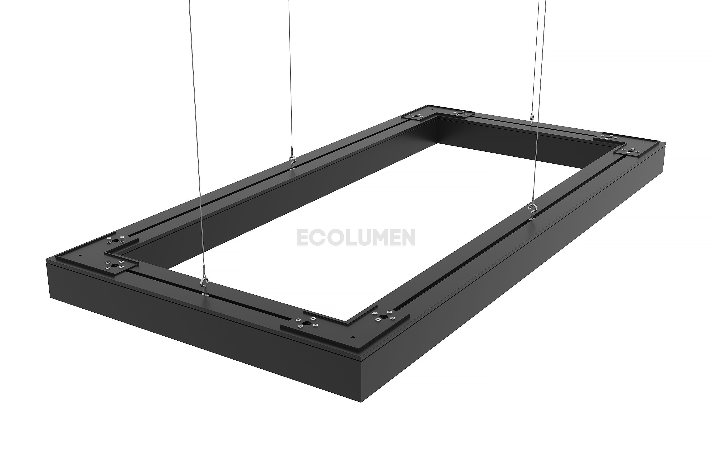 Особая конструкция светильников позволяет собирать их в различные фигуры, парящие в воздухе на подвесах или размещать их на потолке либо стенах накладным способом. Завод-изготовитель дизайнерских светильников «Эколюмен» кроме прямоугольных профильных конструкций производит осветительные приборы и других конфигураций: звезда, крест, квадрат, треугольник, ломаная линия и др.