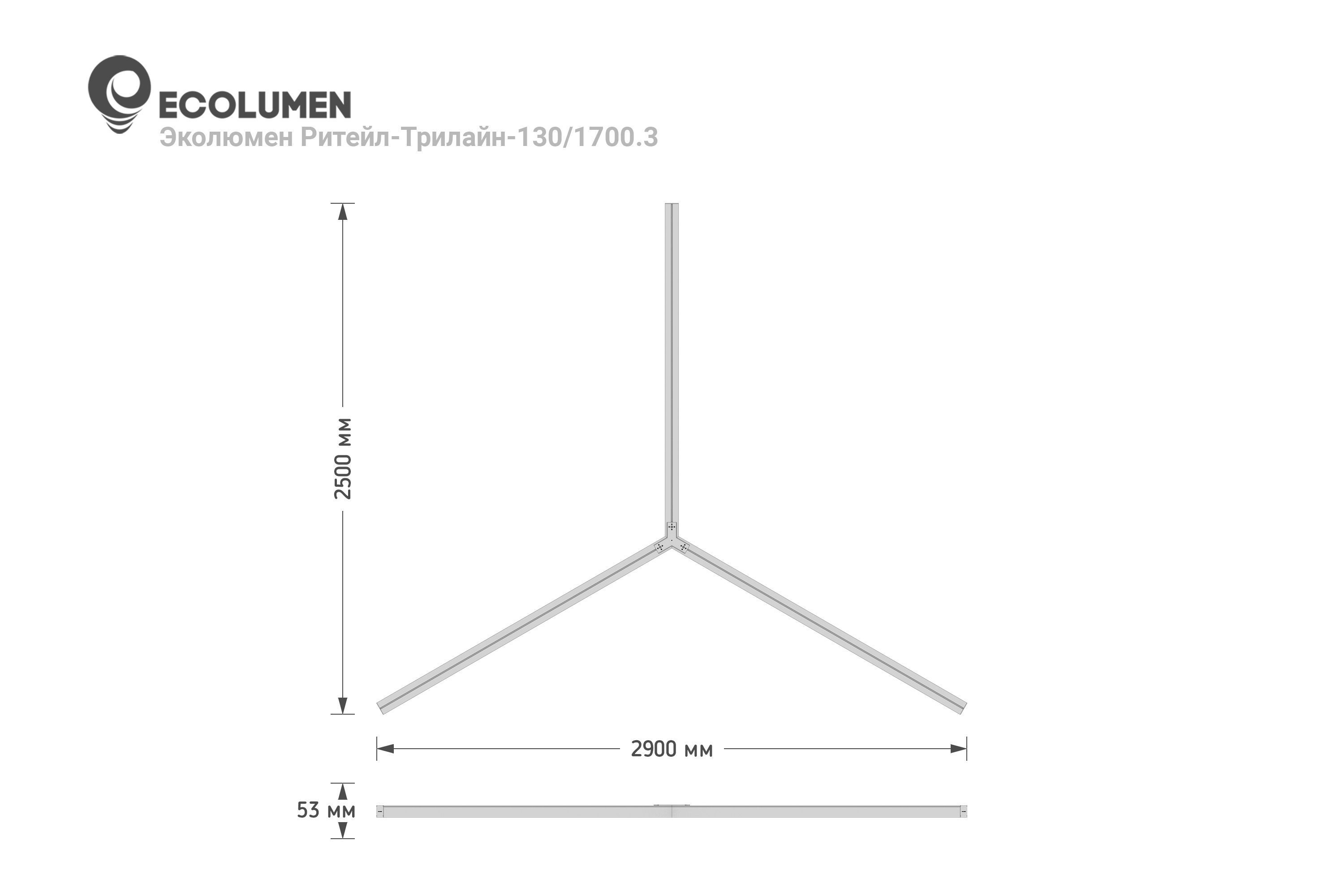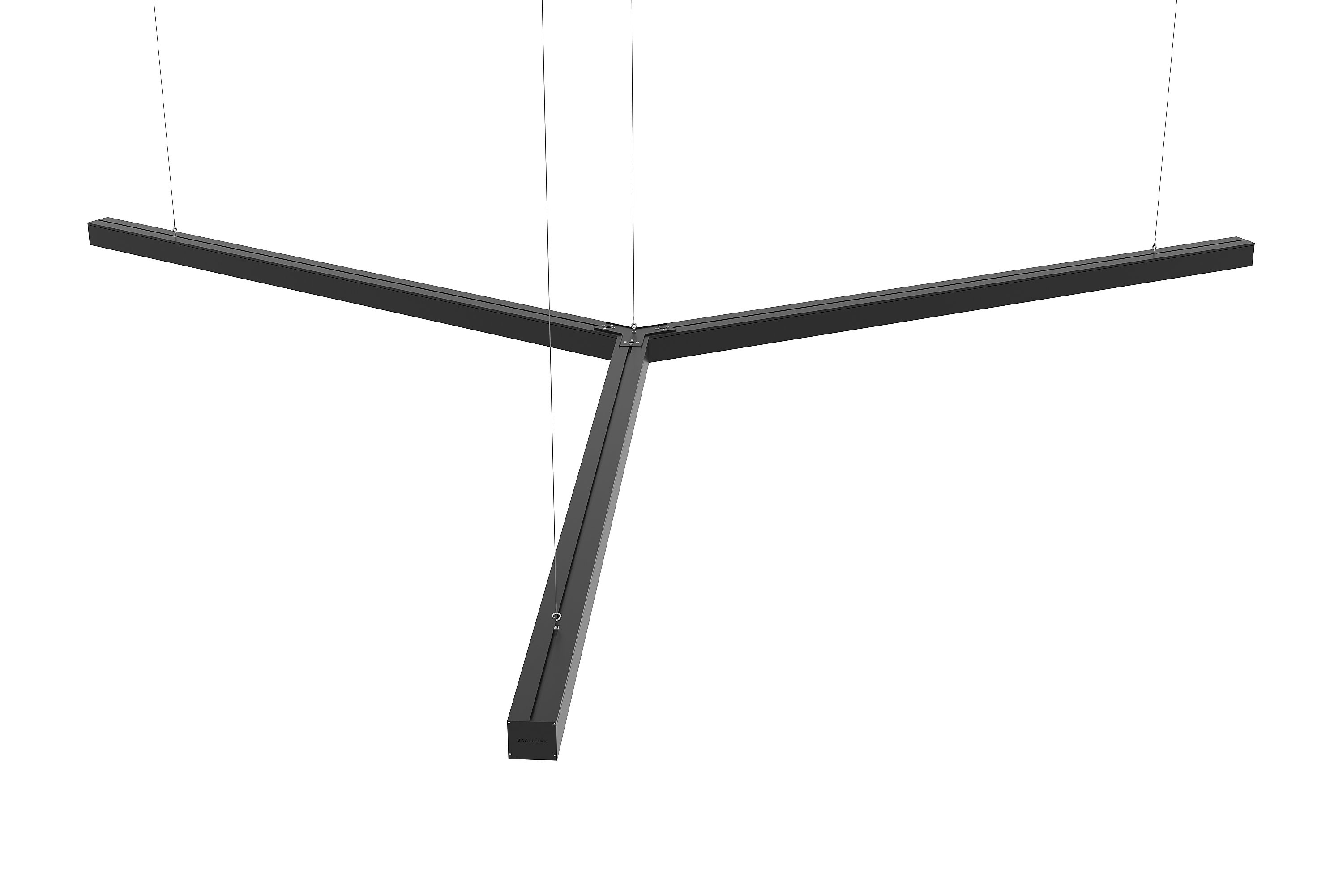 «ECOLUMEN-RETAIL-TRILINE» - российские светодиодные дизайнерские светильники в виде трёхлучевой звезды. Светильники изготовлены из алюминиевого профиля 60х60мм, образующего три равных по длине луча, под углом 120 градусов. Светильники дизайнерского освещения «Эколюмен-Трилайн» используются для освещения офисных и торговых площадей, кафе, магазинов и студий в стиле «лофт» и прочих помещений с потребностью в дизайнерском свете. Y-образная конструкция светильников позволяет собирать их в различные фигуры, парящие в воздухе на подвесах или размещать их на потолке либо стенах накладным способом. Опционально производятся модели для встраивания в подвесной потолок. Завод изготовитель дизайнерских светильников «Эколюмен» кроме трехлучевых конструкций производит и светильники других конфигураций: крест, квадрат, треугольник, прямоугольник, ломаная линия и др. Светильники изготавливаются с разным световым потоком от 3000 до 20000 Лм и могут использоваться как в качестве декоративного освещения и подсветки, так и в качестве основного освещения объекта. Светильники «Ритейл-Трилайн» изготавливаются с длиной лучей от 300 до 2000мм. Изделия комплектуются подвесами длиной 2 метра и окрашиваются в любой цвет по таблице RAL.