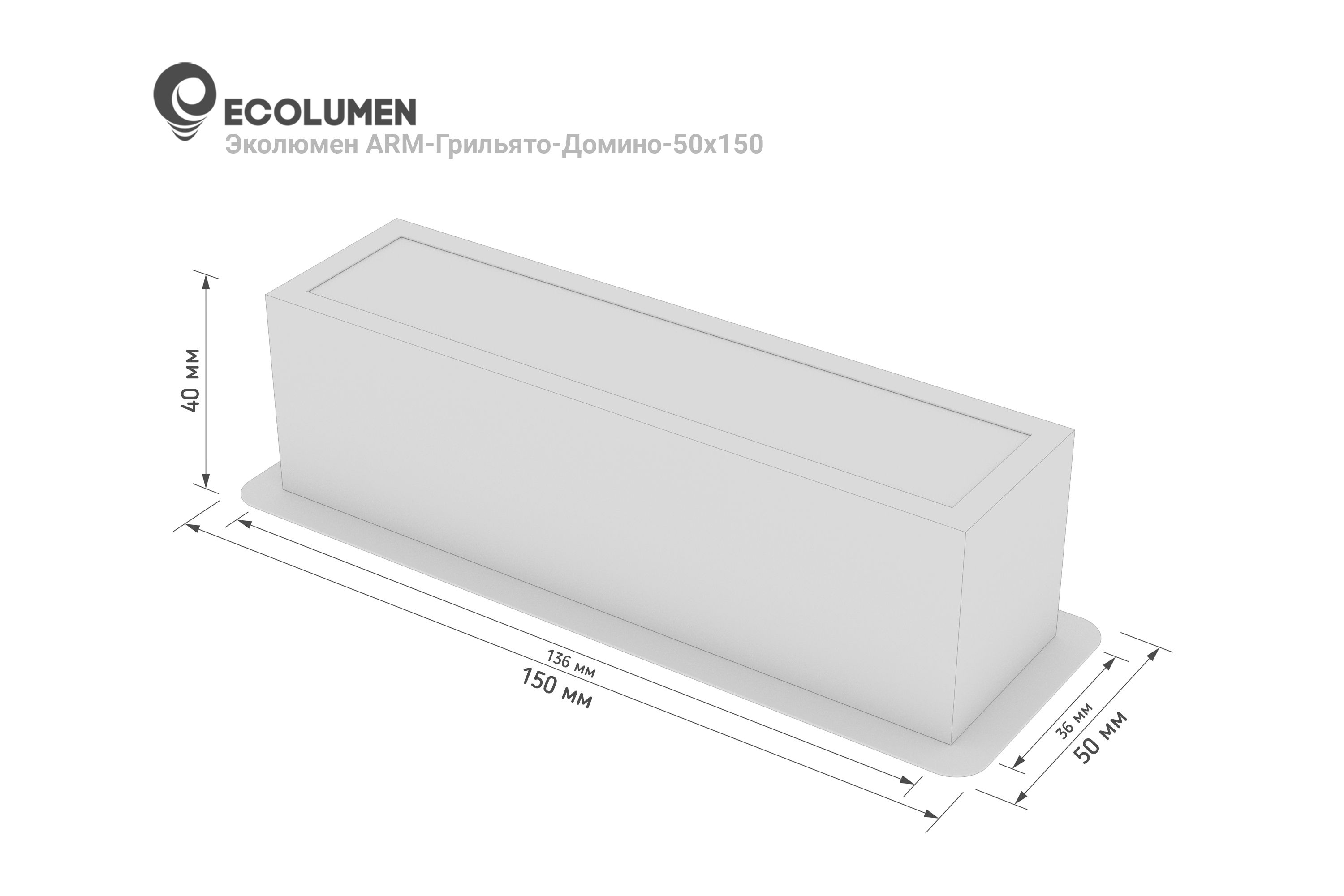 Встраиваемый светильник Эколюмен ARM-Грильято-Домино-7-50х150.1 подходит под ячейку 50х50 и изготавливается по 1шт. Встраиваемые Led cветильники грильято производятся под все известные стандарты подвесных реечных потолков. В ассортименте изделия как квадратной формы для ячеек грильято 50х50,75х75, 86х86,100х100, 150х150, 200х200 и др., так и прямоугольной формы любого размера для установки сразу в несколько ячеек, изготавливаются сетом по 8, 6, 5, 4, 3 и 1шт. Есть возможность изготовления потолочных светильников «грильято» и любых других размеров и конфигураций с любым количеством изделий в комплекте. Встроенные светильники «Домино» имеют рассеиватели «опал» и равномерную засветку. Групповое исполнение светильников позволяет получить множество вариантов различных световых композиций в реечных потолках. Это и симметричные и ассиметричные фигуры, хаотичное размещение, домино, шахматный порядок, линейное размещение по периметру, световые фигуры в форме квадрата или треугольника и т.п. Светильники имеют различную степень защиты IP20, IP40, IP54, IP65, IP67 в зависимости от места установки, назначения и могут быть применены в дизайне «Лофт», как замена светодиодных люстр и других типов освещения потолков грильято.