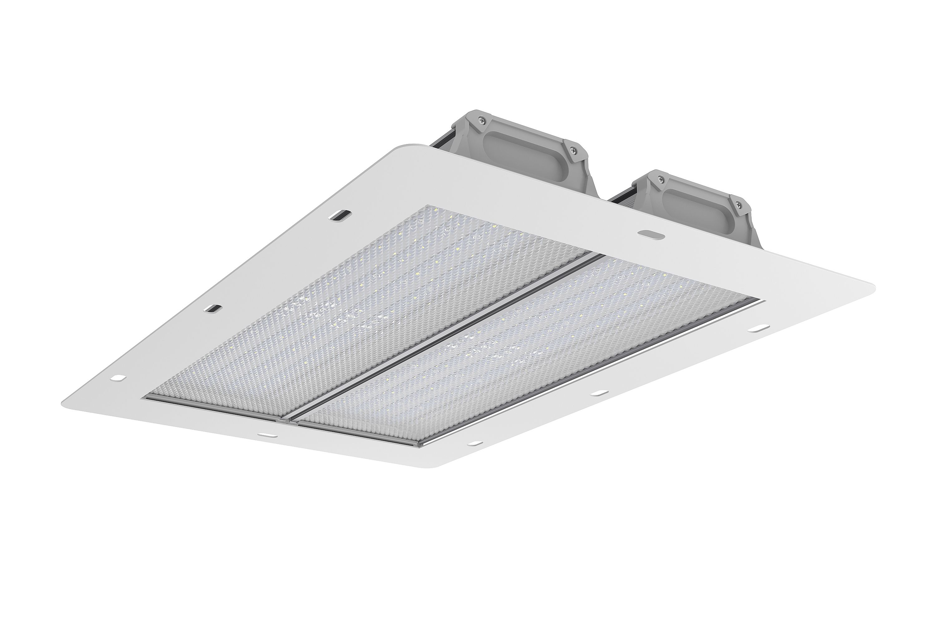 В комплект поставки входит монтажная, декоративная рамка, позволяющая встраивать светильники в потолки и навесы на автозаправочных станциях.