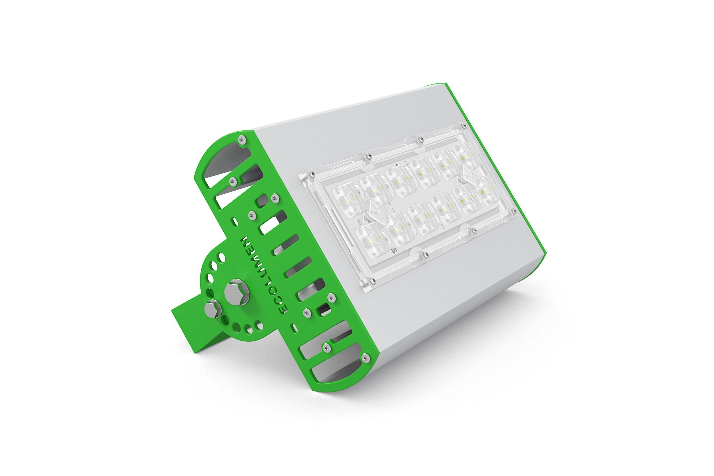 Алюминиевый корпус с дополнительными ребрами охлаждения позволяет добиться эффективного охлаждения светодиодов. Вторичная оптика (линзы) позволяет получить любую КСС и достичь необходимой освещенности при меньшей мощности светильника.