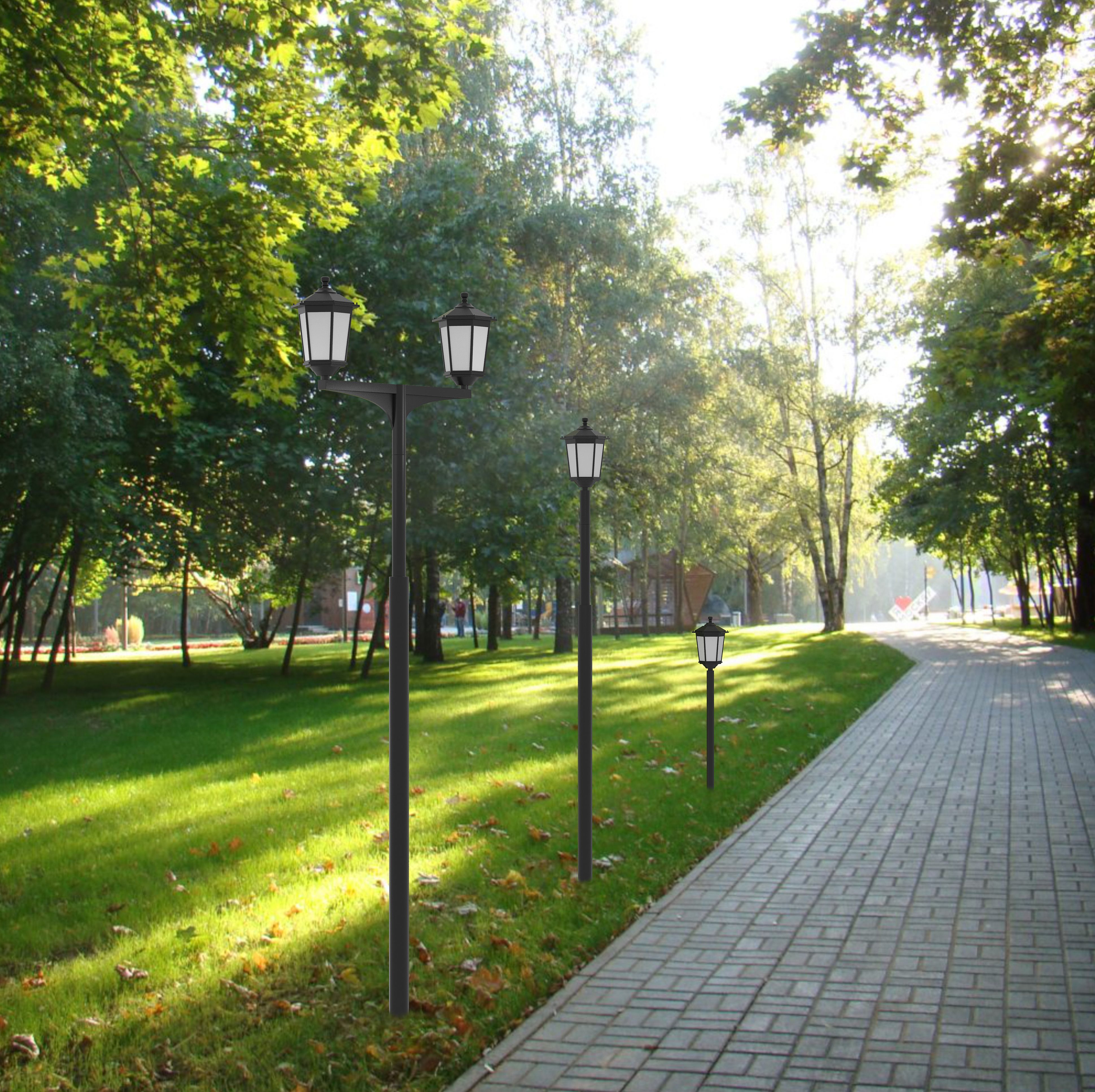 Благодаря своему ретро дизайну с плафонами шестиугольной формы и опор в минималистическом стиле, светильники хорошо вписываются в системы освещения улиц, парков, набережных, тротуаров, прогулочных зон и пешеходных дорожек. Светильник Эколюмен-Парк Нева 1 состоит из стальной опоры с термическим цинковым покрытием и полимерно-порошковым окрашиванием в любой цвет. Светильники так же могут комплектоваться закладными деталями.